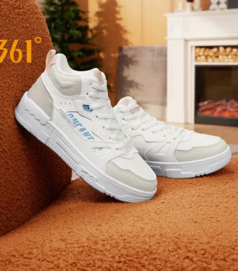 361 Degrees Women Plush Skateboard Shoes Leather Warm Water-repellent Non-Slip Soft Rebound Comfort Female Sneakers 682446613B
